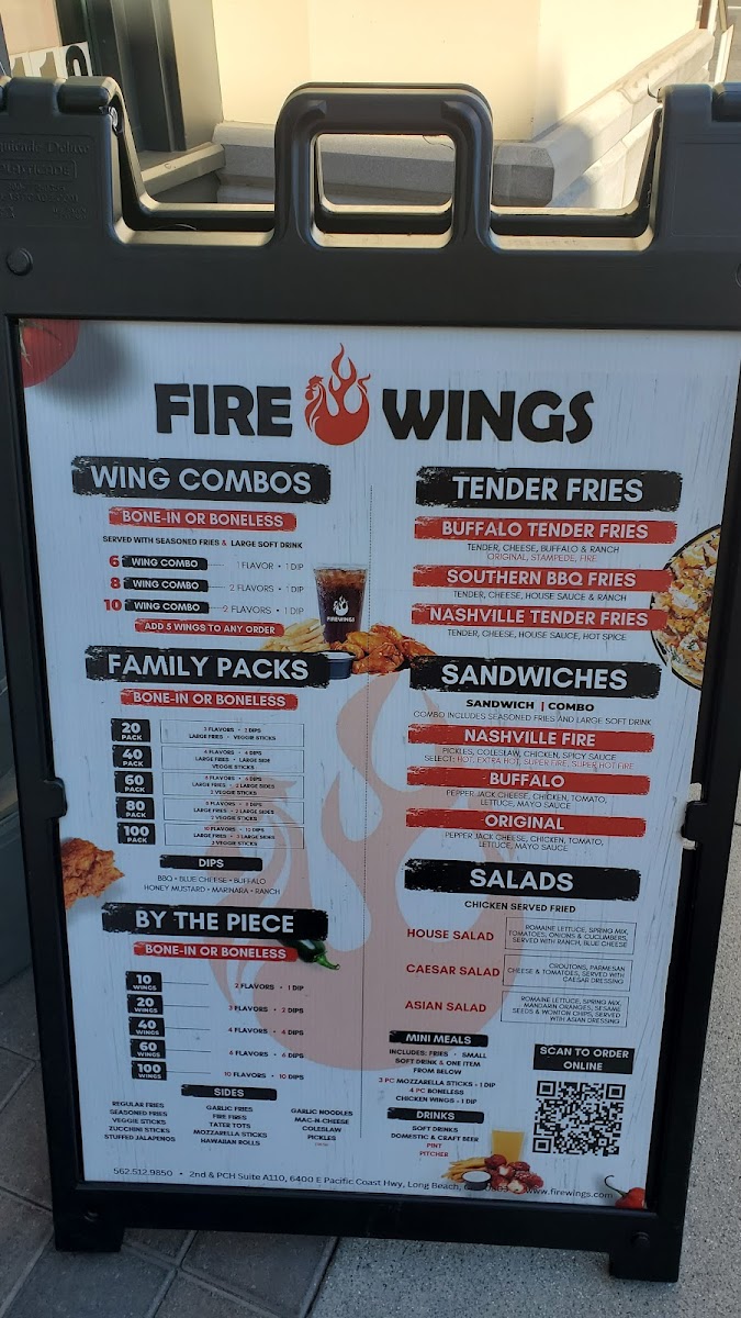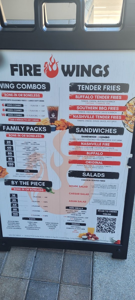If you're in Long Beach and craving something spicy, delicious, and totally satisfying, the Fire Wings Long Beach 2Nd & Pch Menu is your go-to spot. Located at 6400 E Pacific Coast Hwy Suite A-110, it's the perfect place to enjoy bold flavors with a fun, casual vibe. From classic wings to unique, mouthwatering flavors, there’s something to suit every taste. Whether you like your wings hot and fiery or prefer a milder option, the menu has a range of sauces to choose from, all made with fresh, quality ingredients. Don't miss out on their crispy fries and sides that perfectly complement the main event. The menu also offers a variety of appetizers and other crowd-pleasing options to make your meal even more enjoyable. Whether you’re here for a quick bite or a full-on feast, you'll find everything you need to satisfy your cravings.